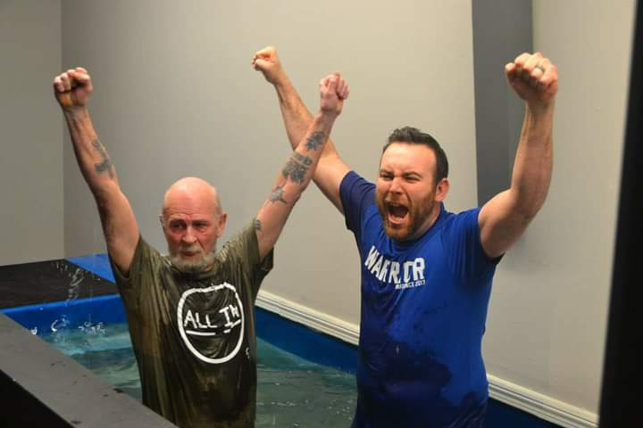 On February 3rd, 2018, just a little over a month from the day of his salvation, Dave was baptized. I was asked by the lovely woman who’s in charge of the baptisms if I’d like to read his testimony. Naturally, I said, “yes”, then bawled like a baby. I asked her to keep it a secret as I wanted to surprise him. And surprise him I did! As he stepped down into the baptismal pool, I was already standing on the platform to the far right, microphone in hand and ready to go. I knew he didn’t have his glasses on, so I stepped forward, close enough for him to see me and said, “Surprise!”. I could tell he was overwhelmed with emotion and I could not be more proud of his powerful testimony and I was humbled beyond measure to be able to share in this life-changing moment with him.